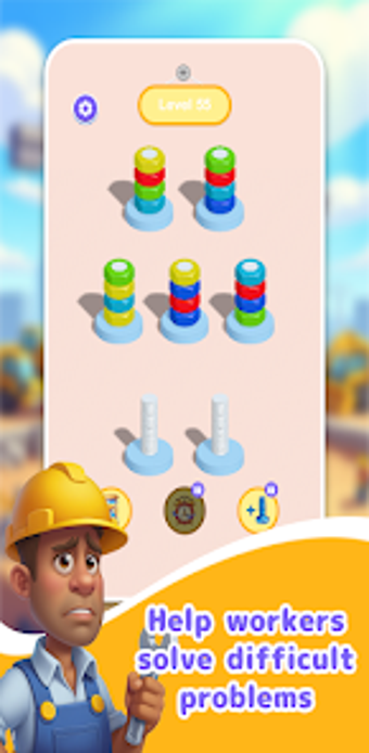 De unieke gameplay van WorkersScrews omvat het draaien en verwijderen van kleurrijke moeren van torenhoge bouten en het nauwkeurig opnieuw samenstellen van dezelfde kleuren op enkele schroeven om niveaus te voltooien. Met zijn frisse twist op traditionele puzzelspellen biedt WorkersScrews een verfrissende manier om je vaardigheden te testen en te genieten van een verslavende puzzelervaring.